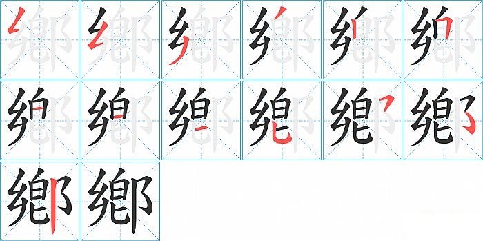 撇折、撇折、撇、撇、竖、横折、横、横、撇、竖弯钩、横折折折钩/横撇弯钩、竖