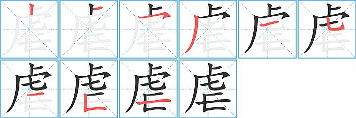 "虐"字的笔顺分步演示图:
