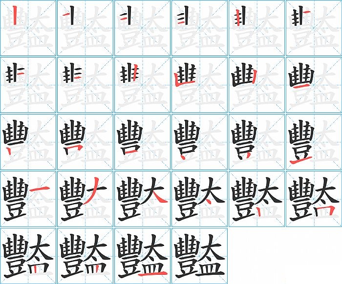 横、横、横、竖、竖、横、横、横、竖、竖折/竖弯、竖、横、竖、横折、横、点、撇、提、横、撇、捺、点、竖、横折、竖、竖、横