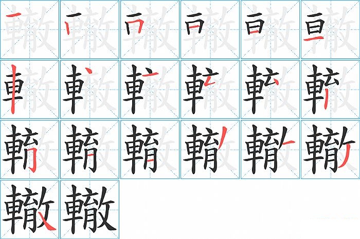 横、竖、横折、横、横、横、竖、点、横、撇折、点、竖、横折钩、横、横、撇、横、撇、捺