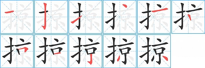 横、竖钩、提、点、横、竖、横折、横、竖钩、撇、点