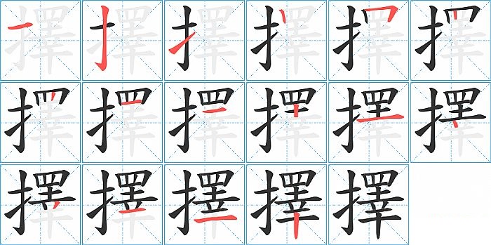横、竖钩、提、竖、横折、竖、竖、横、横、竖、横、点、撇、横、横、竖