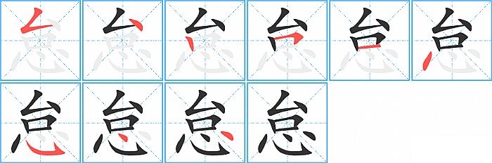 撇折、点、竖、横折、横、点、斜钩、点、点