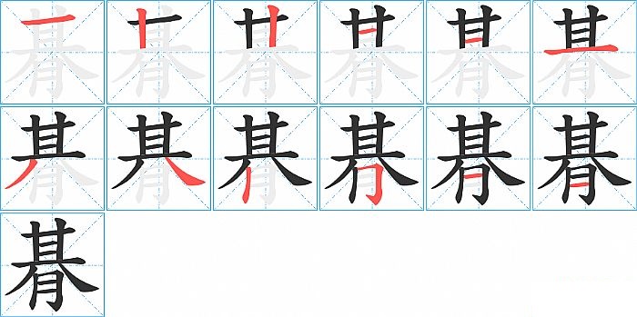 横、竖、竖、横、横、横、撇、捺、竖、横折钩、横、横