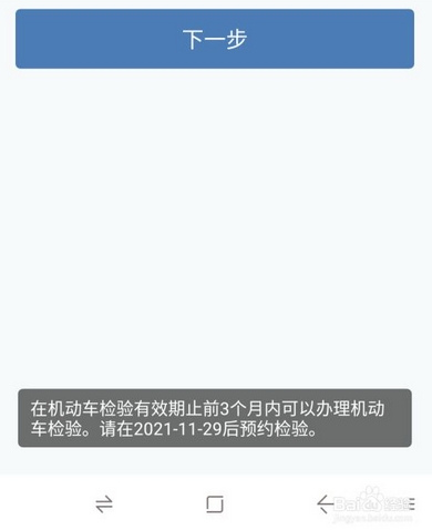 在跳出的对话框中,挑选个人检验车辆要去的【城市位置】挑选好【区域】之后,点一下下边的【下一步】车辆必须在规定的时间内才能够进行【检验】,购买时间在6年以内的新车可以免去上线检验。