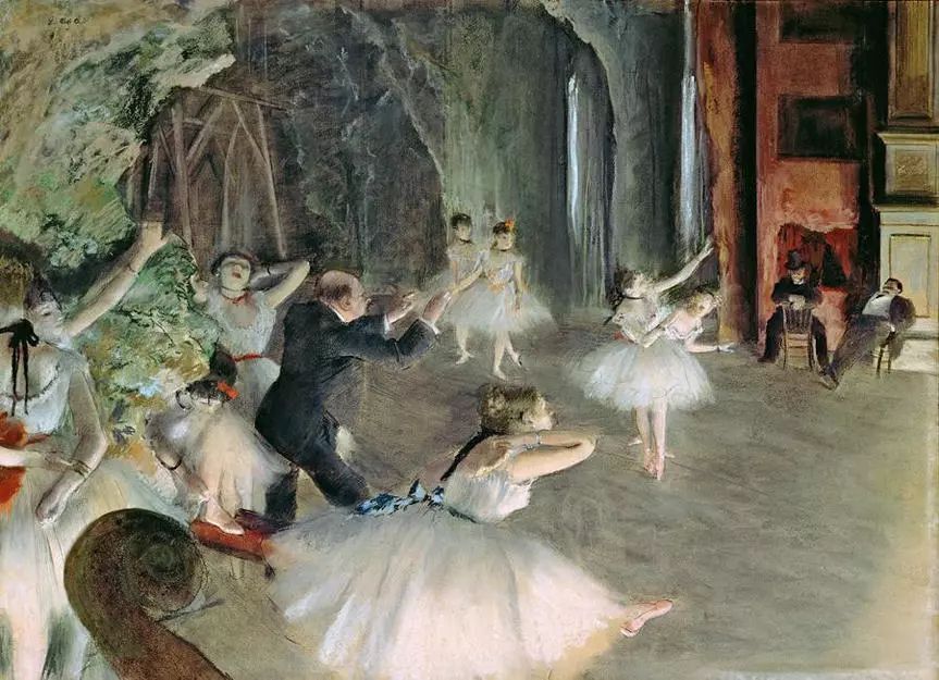 这是我们非常熟悉的一幅画作——《舞台上的舞女》,是法国印象派大师德加的作品。人们称赞德加是画舞女的大师,而德加自己却说:“人们称我是画舞女的画家,他们不知道,舞女之于我只是描绘美丽的纺织品和表现运动的媒介罢了。”这是印象派画家共同的艺术观念,光与色才是绘画的根本。