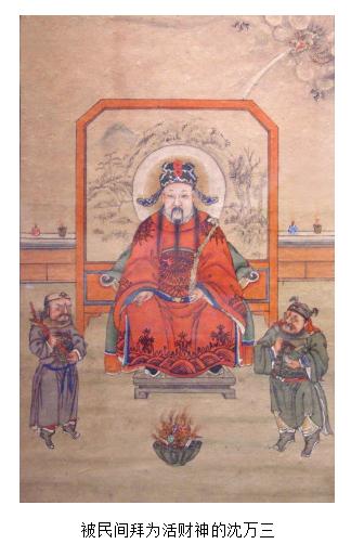 但据顾诚先生考证,历史上的沈万三根本不是明代人,而是元代末期苏州一个大地主,从来就没有和朱元璋打过交道。而且,在他的有生之年,既未出仕,无政绩可言,又算不上文人雅士,不足以跻身儒林,所以只是个默默无闻的“多田翁”。明朝以降,沈家一分为四,财富越积越多,在朱元璋推行的粮长制度下,沈家子孙日渐出头露面,甚至入朝为官,加上同文人的交往日益密切,名气越来越大,沈万三也就成了沈家财富的代名词,逐渐神化为箭垛式的财神爷。