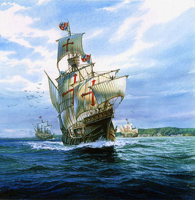 1492年8月3日,意大利航海家哥伦布(1451—1506年)终于实现了航海计划,率领由3艘帆船组成的船队,在太阳还未升起的清晨,从西班牙的巴罗斯港扬帆起航了。